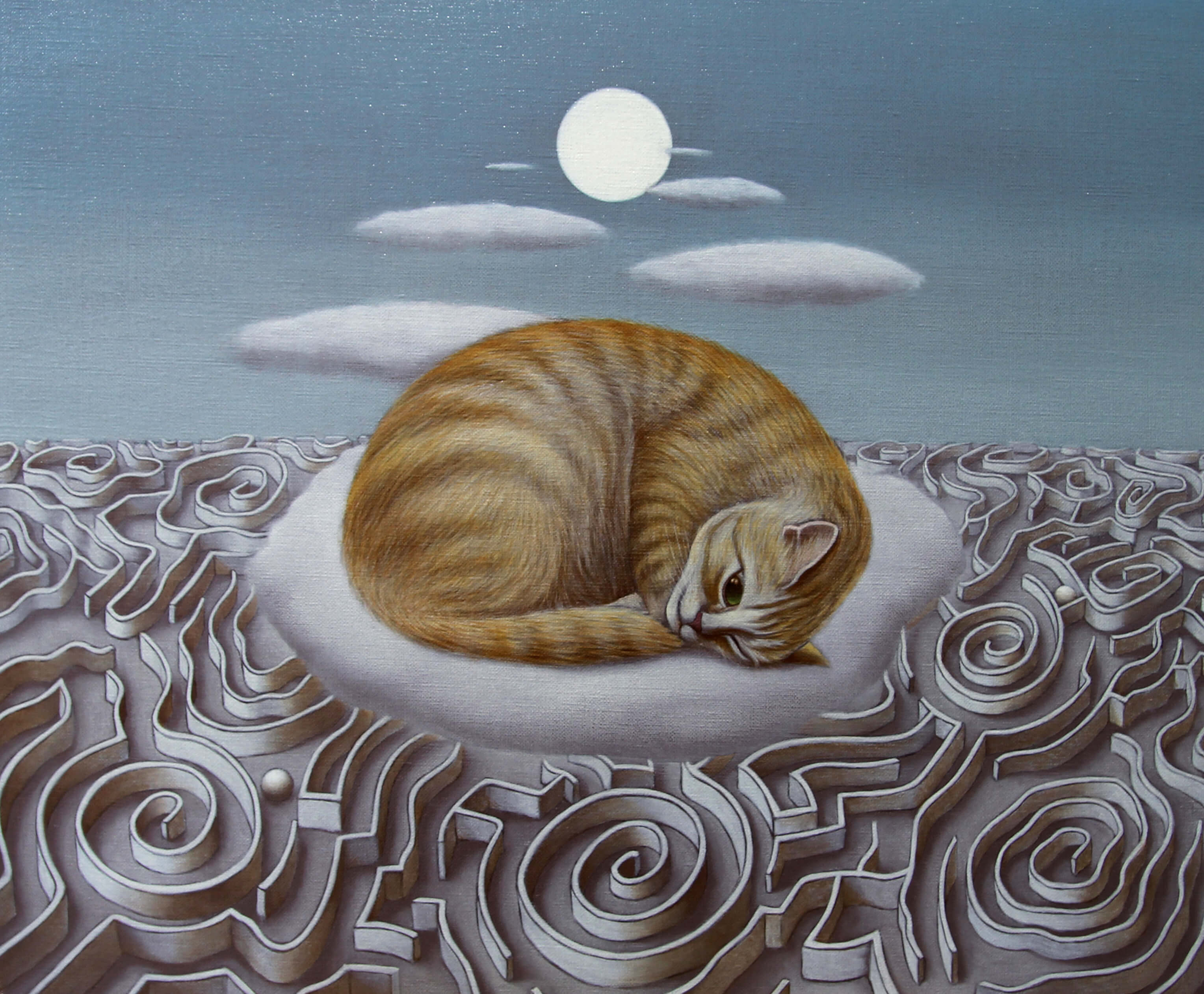 飄浮在迷宮上的橘色小貓